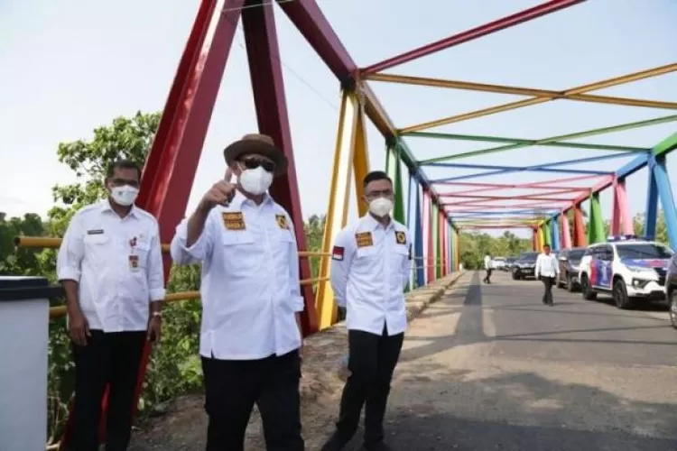 Usai meninjau rumah bantuan, Gubernur WH beserta rombongan juga meninjau jembatan warna-warni yang oleh masyarakat lebih dikenal sebagai jembatan pelangi. Jembatan ini sebagai tanda jembatan yang dibangun oleh Pemprov Banten di ruas jalan Tanjung Lesung – Sumur. Menurut Gubernur WH, jembatan pelangi dibangun untuk mendukung standar jalan mantap Provinsi Banten, sekaligus menjadi penanda pengguna jalan sudah memasuki wilayah Provinsi Banten.